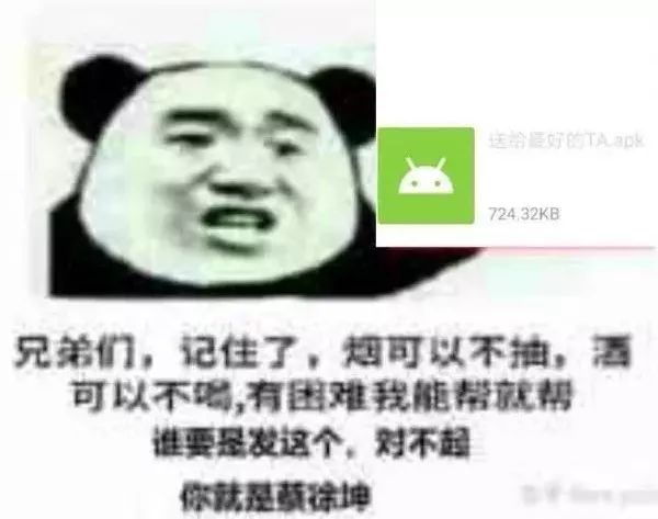 送给最好的TA——这是这个APK文件的名称,确切来说是第一个传播人起的昵称。在网上,大家对于该文件来历的猜测颇多,有整蛊文件、恶意软件、恶作剧工具或是病毒等。