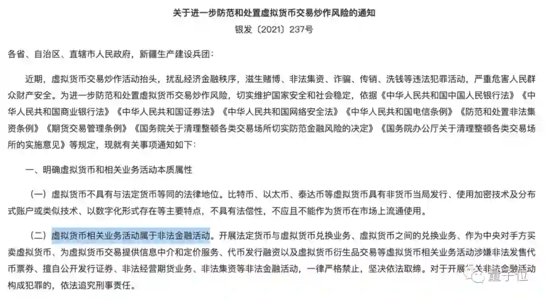 事实上,早在去年9月,中国人民银行等十部门就发布了《关于进一步防范和处置虚拟货币交易炒作风险的通知》,其中有这么一条: