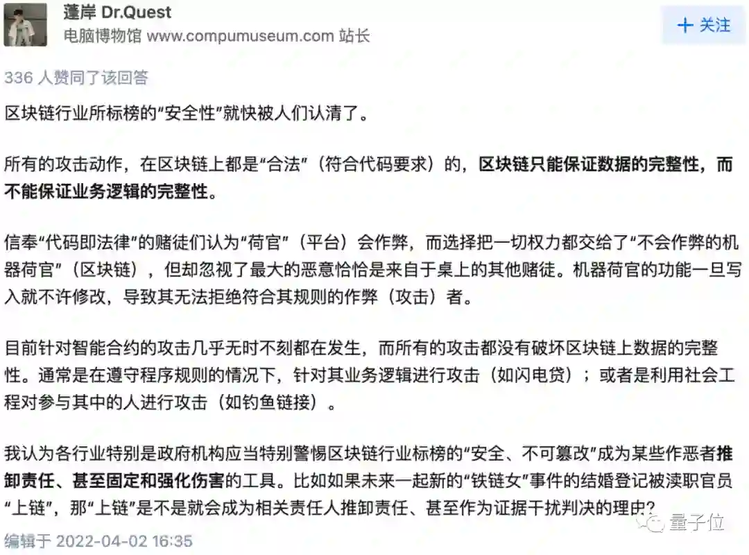 区块链只能保证数据的完整性,而不能保证业务逻辑的完整性。