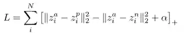假设一个嵌入锚示例zia的三重集合,一个嵌入正示例zip和一个嵌入负示例zin,这个目标最小化锚与正锚与锚与负锚之间的距离差以及给定的裕度α。α是一个超参数。如果正例与锚之间的距离较小,而负例与锚之间的距离较大,则三重损失L较小。参数α确保允许同一类的示例之间存在空白。