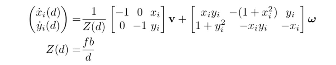 假设相机速度已知,对于给定的视差d,可以使用运动场方程近似光流。 运动场方程描述了摄像机的线速度(v)和角速度(ω),点(x,y)的深度Z之间的关系,我们在此将其视为视差d和图像中点的运动的函数,我们近似为光流( ẋi,ẏi ):