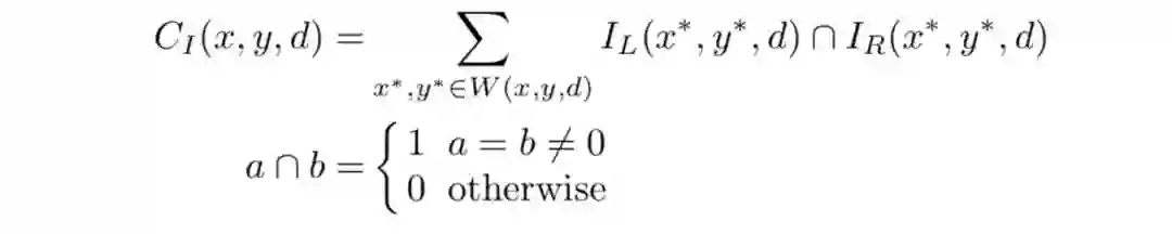 然后,代价奖励窗口相似。 也就是说,希望两个图像之间的像素具有相同极性的事件。 使用交叉项对此进行编码,定义为: