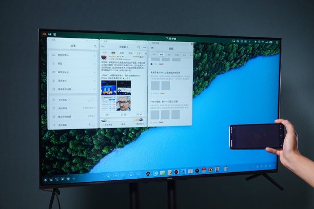 不过相比大爆炸 3.0 的完善与补齐,一步 3.0 这一次可以称得上是脱胎换骨。相较于常见的将屏幕进行上下分屏,一步 3.0 将分屏变成了最多四个 App 在前台同时运行,主应用居多,而分屏的应用则存放于侧边栏。这样的好处就是更加有利于原本跨平台应用之间的数据交换,比如我可以直接把微信中的图片拖到微博中,然后编辑微博发送,不用保存在本地,从两条线段变成了一条线段,操作更符合我们的直觉。