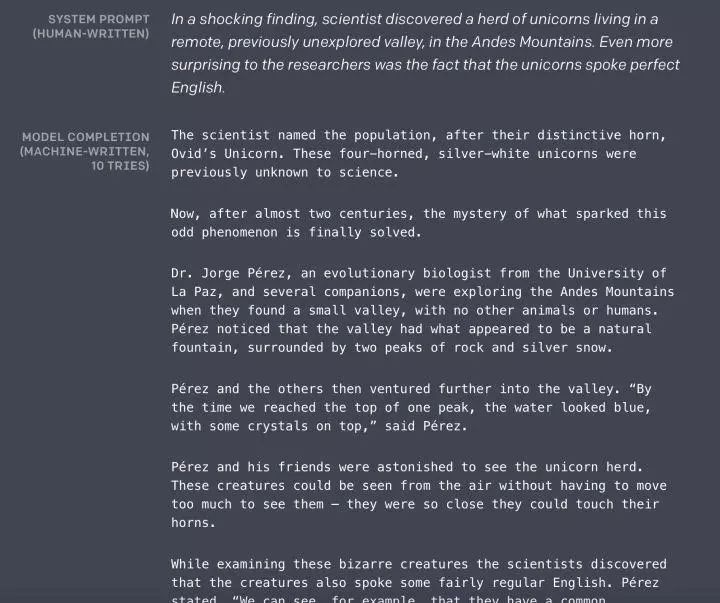 我的感觉,GPT 2.0 作为语言模型,用来生成自然语言句子或者段落的能力特别强,要理解有多强,看下面的例子就知道了: