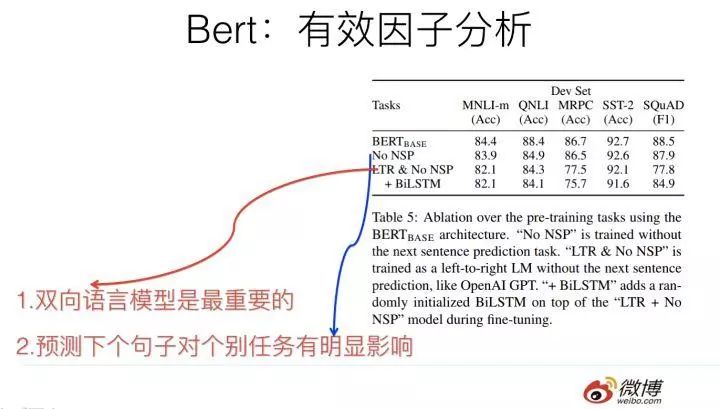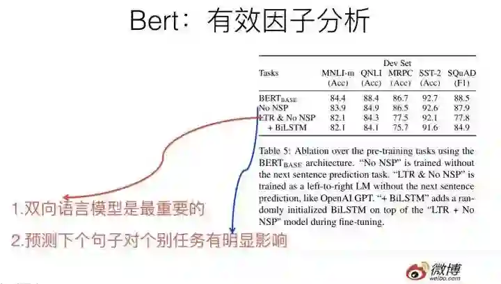 我的不太准的第六感隐隐约约地告诉我:貌似 GPT 的作者们,对于 GPT 作为本来该火的前辈模型,结果默默无闻,而后来居上的 Bert 爆红,可能对这点有点意见?因为它们两者仅有的大的不同就是 GPT 用的单向语言模型,Bert 用的双向语言模型做预训练。所以感觉他们在做 GPT 2.0 的时候憋着一口气。为啥这么讲呢?因为 Bert 在论文的实验部分已经证明了:Bert 的效果比 GPT 好主要归因于这个双向语言模型(参考上图 Bert 的实验结果,去掉双向语言模型的对比模型其实就等价于 GPT 1.0)。按理说,正常的思考模式,后面的改进模型应该采纳双向语言模型,原因很简单,因为它比单向的效果好。