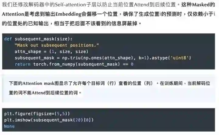 3) 类似的,解码器中的Self-attention层允许解码器中的每个位置Attend当前解码位置和它前面的所有位置。这里需要屏蔽解码器中向左的信息流以保持自回归属性。具体的实现方式是在缩放后的点积Attention中,屏蔽(设为负无穷)Softmax的输入中所有对应着非法连接的Value。