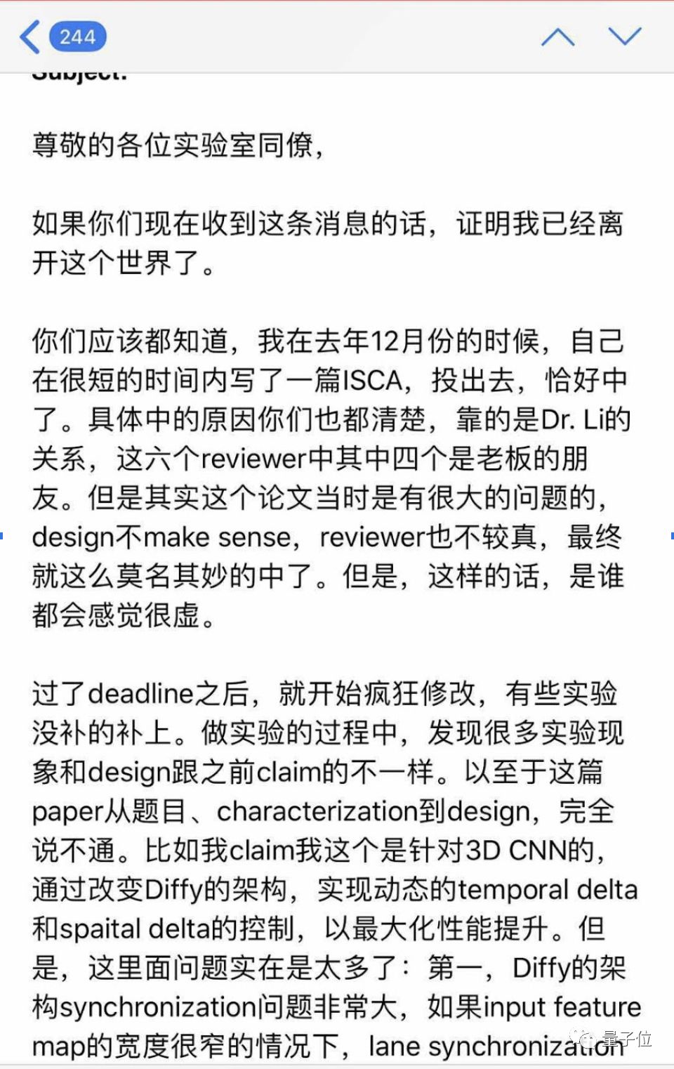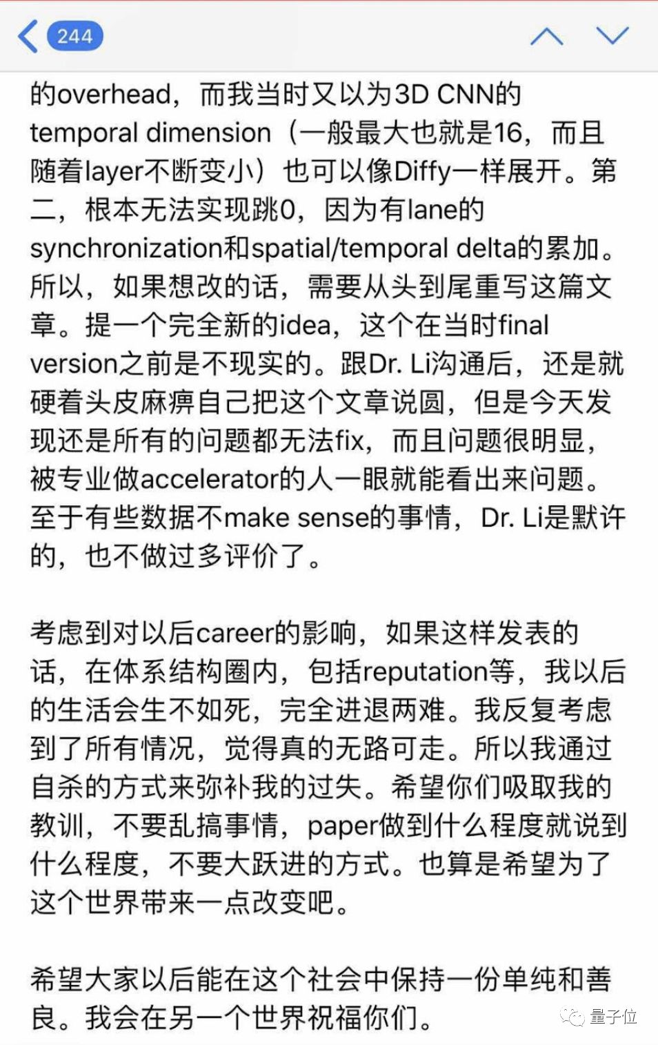 从遗书来看,学术论文不严谨,但又覆水难收,将面临名声败坏,职业生涯无望的境地,进退两难之下,最终把Huixiang逼上绝路。