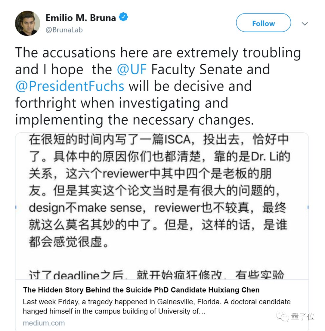 但截止目前,佛罗里达大学以及Huixiang Chen的导师,都没有公开回应。