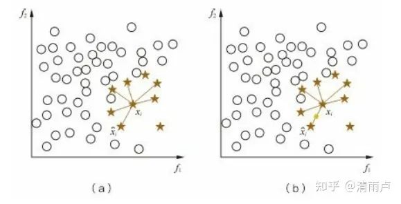 每个少数类样本合成相同数量的新样本,这可能会增大类间重叠度,并且会生成一些不能提供有益信息的样本