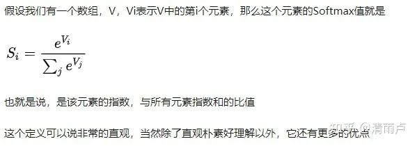 如果使用max函数,虽然能完美的进行分类但函数不可微从而无法进行训练,引入以 e 为底的指数并加权归一化,一方面指数函数使得结果将分类概率拉开了距离,另一方面函数可微。