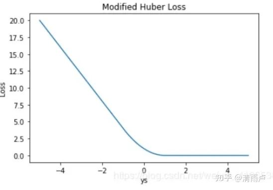 结合了 Hinge Loss 和 交叉熵 Loss 的优点。一方面能在 ys > 1 时产生稀疏解提高训练效率;另一方面对于 ys < −1 样本的惩罚以线性增加,这意味着受异常点的干扰较少