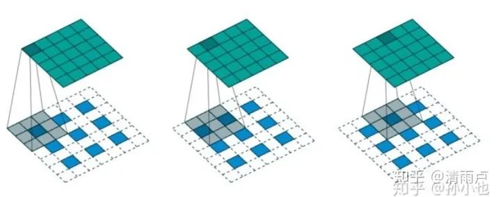 在图像分割领域,图像输入到CNN(典型的网络比如FCN[3])中,FCN先像传统的CNN那样对图像做卷积再pooling,降低图像尺寸的同时增大感受野,但是由于图像分割预测是pixel-wise的输出,所以要将pooling后较小的图像尺寸upsampling到原始的图像尺寸进行预测,在先减小后增大尺寸的过程中,肯定有些信息损失掉了,如何避免?答案就是空洞卷积。