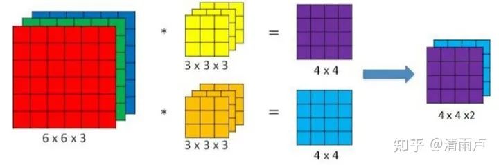 普通卷积核同时改变图像的空间域和通道域,如下图所示,每个卷积核的通道数与输入相同,卷积后会得到一个通道为一的特征图,我们希望卷积后的通道数有几个,卷积核就有几个。