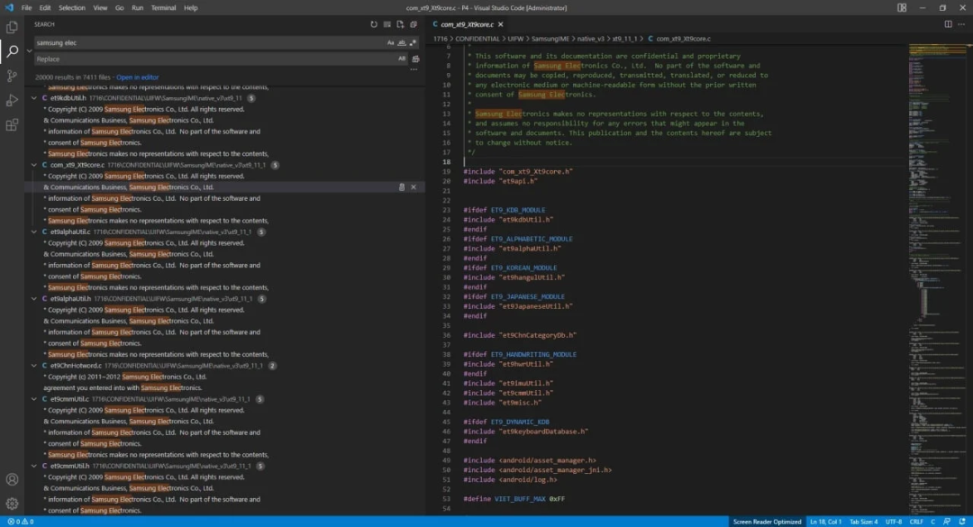 LAPSU$公布了大量文件,声称这些文件属于三星电子,其中包括一张三星软件中C/C++程序的快照。