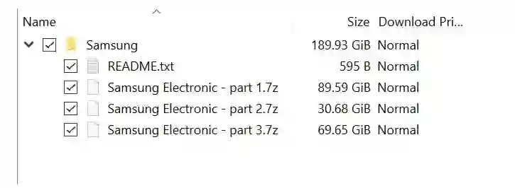 根据LAPSU$的说法,三星的这些机密资料被压缩到了190GB左右大小,并且还提供种子下载。