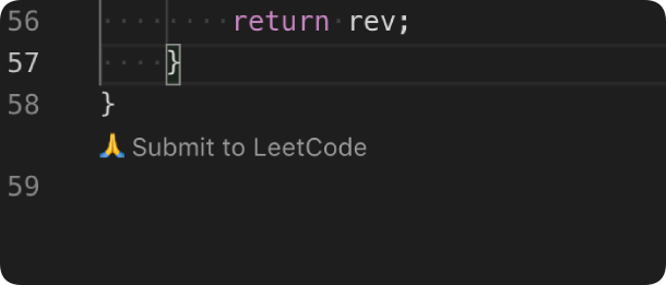 通过点击文件最下方的 🙏 Submit to LeetCode 可提交答案。 你也可以触发 LeetCode: Submit to LeetCode 命令将当前文件作为答案进行提交。