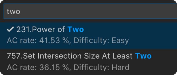 注意:若当前 VS Code 没有已打开的文件夹,则生成的题目文件会存储于 $HOME/.leetcode/ 目录下。