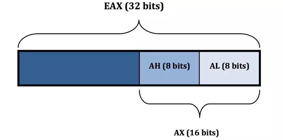 也适用于接下来的三个寄存器(EBX,ECX和EDX)。