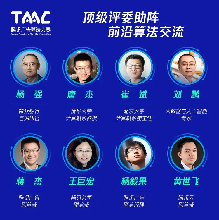 2020 腾讯广告算法大赛不仅邀请到了相关领域的四大重磅评委嘉宾坐镇,更有四位经验与实力兼并的腾讯高管给予参赛者专业的点评和指导: