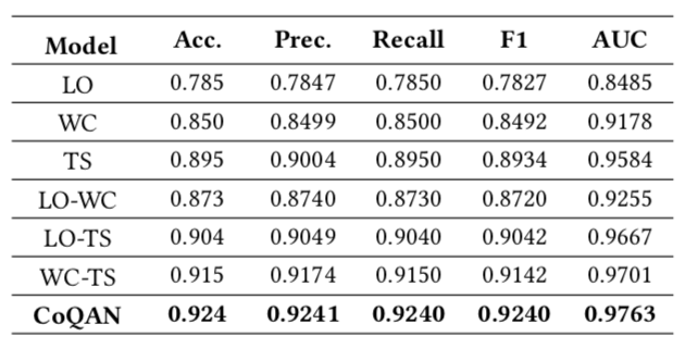 论文里把上面这个网络架构叫做CoQAN,文章质量分的训练模式被当成了二分类问题。