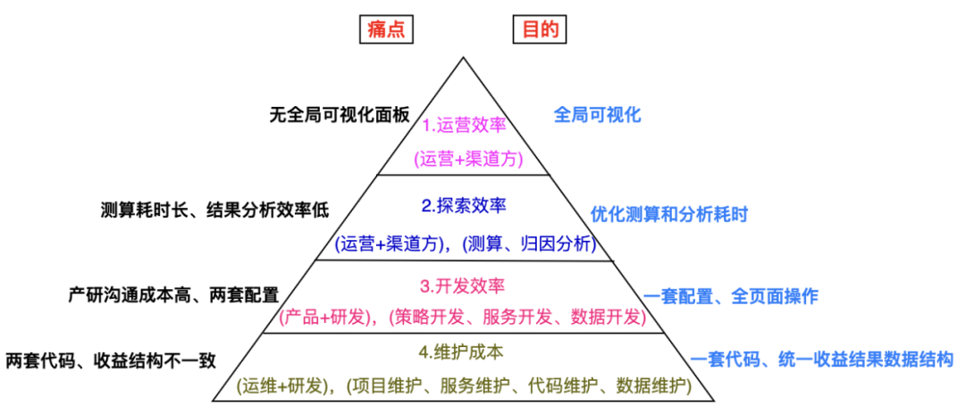 在业务迭代的过程中,从研发视角看,随着新场景的不断接入,以及原有功能的迭代,系统变得越来越复杂,需求响应逐渐变慢;从用户视角看,配置复杂的结算策略,以及传承结算业务逻辑,越来越低效。以降本提效为目标,我们对系统架构进行了多次迭代,在业务发展前期,开展过单模块的重构,如策略配置、指标服务等,虽然对效率提升有一定的改善,但是还会存在以下问题: