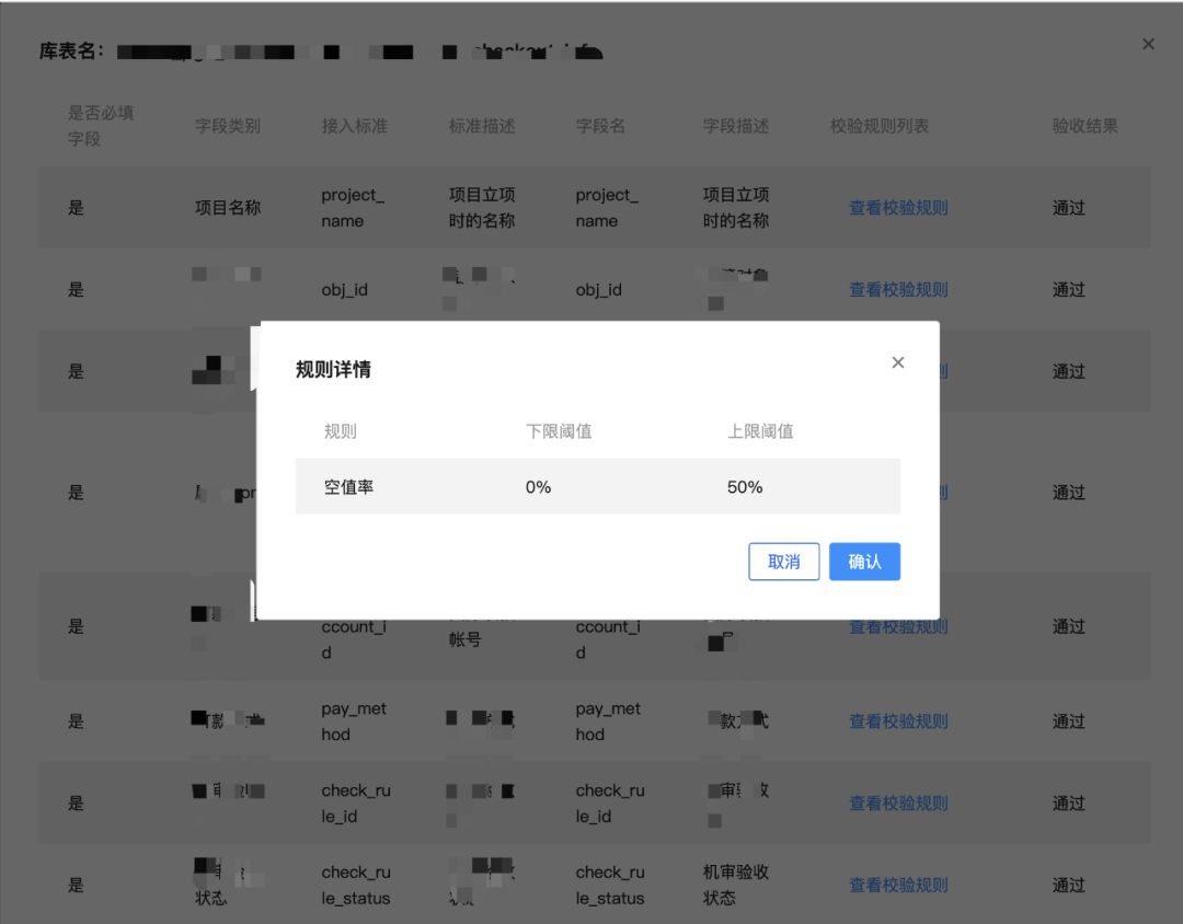 结算平台提供了校验能力来检测数据是否符合平台接入标准,并对后续数据进行质量监控和告警。用户在系统上配置数据的验收规则,提交任务一段时间后会收到数据的验收结果,告知是否符合平台标准,系统界面如下图所示: