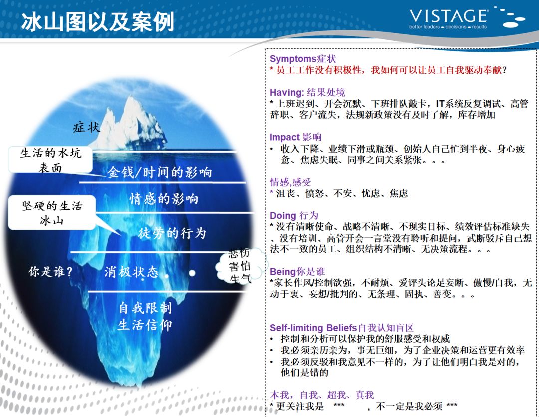 去年年初我去美国佛罗里达参加全球教练出席的伟事达60周年大会,当时看到了冰山图的方法论,不过因为当时有太多东西学没有仔细感悟。