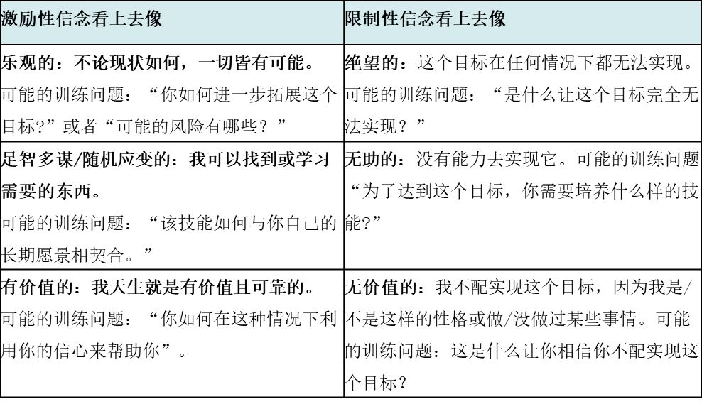 我们不是生来就带着限制性的信念;只是往往我们让自己表现出有这样一种信念,所以是有可能打破这一种局限性的信念,教练辅导主要是为了消除或者重构限制性的信念。
