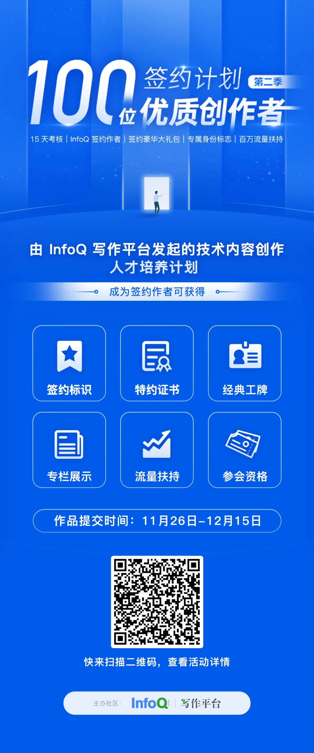 为了能帮助培养各技术方向的优质内容创作者,InfoQ 写作平台面向全网 IT 领域创作者,发起了“100 位优质创作者签约计划”,寻找 IT 行业“领头羊”。