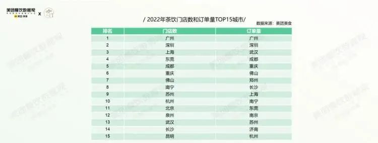 果然不出所料,今年的茶饮订单量和门店数冠军,依然是广州。