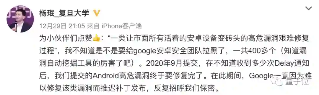 杨珉教授还吐槽到,本来谷歌团队是要在2个月内修复的,但事实是:
