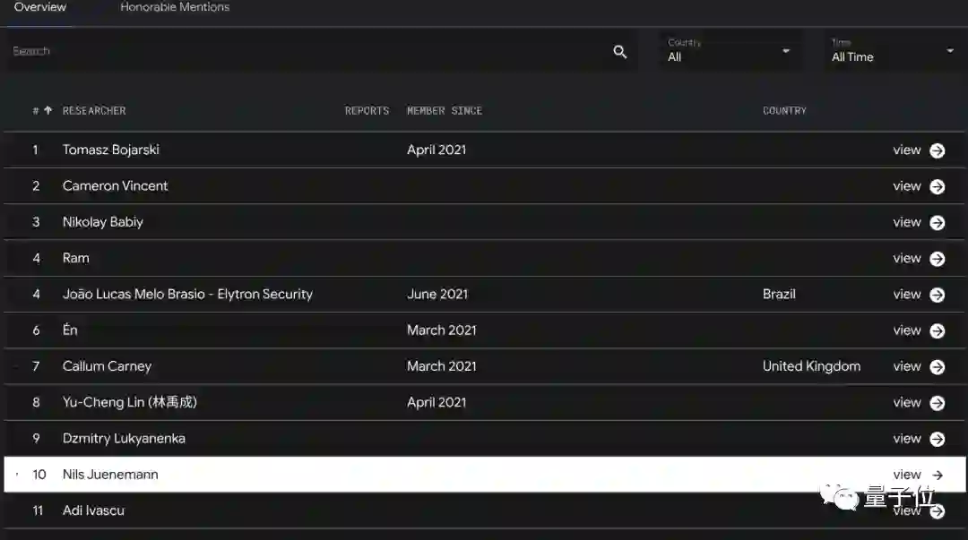 还有5个月前刚刚搞的平台Google Bug Hunters,整了一个Bug猎人排行榜,就是为了鼓励更多人找Bug: