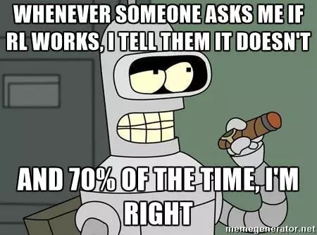 每当有人问我强化学习能否解决他们的问题时,我会说“不能”。而且我发现这个回答起码在70%的场合下是正确的。