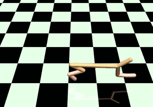 在HalfCheetah环境中,我们有一个受限于一个垂直平面的双足机器人,这意味着它只能向前或向后运动。