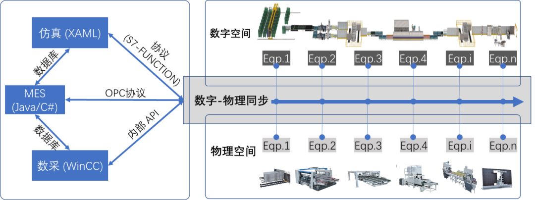 如图4所示,提出了新型的智能车间分布式集成方法,支持不同单机供应商的设备进行异地上线测试。搭建工业控制网络,建立车间数字化模型与车间实物设备之间的通讯通道,利用软PLC控制数字化模型的动作,利用脚本控制在制品运动;通过下行指令二分、上行信号互较等机制,实现车间数字化模型与实物之间的动作与运动同步,大幅降低集成周期与集成成本。
