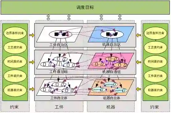 在被调度中,即便出现扰动,工件、机器也只能被动接收指令和服从指令,由指挥中心进行决策并下达指令。因此,传统研究工件、机器只有执行,没有“行为”。而在主动调度中,调度主体拥有调度的主动权,并且能够展现出决策的自主性。