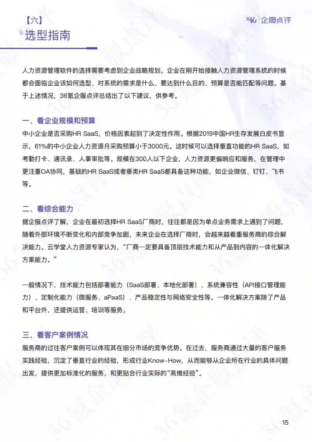 《人力资源SaaS选型指南「上」》报告分为以下六大章节: