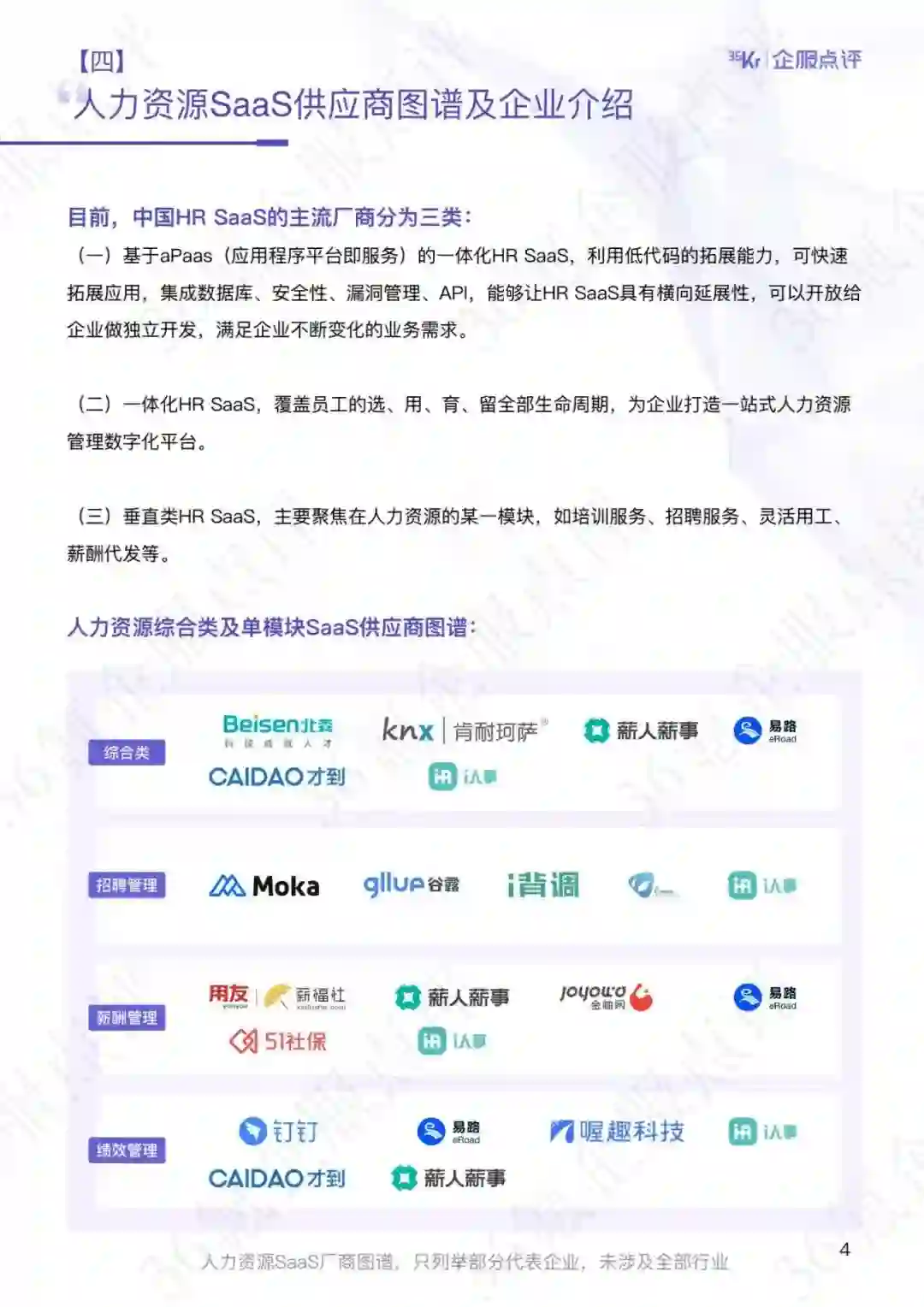 为了帮助更多有采购需求的企业快速了解HR SaaS赛道的概况,36氪企服点评推出了《人力资源SaaS选型指南》系列报告,将用上下两部分,为企业分析HR职能六大模块的头部厂商与应用场景,帮助企业从零到一搭建自己的HR软件集成。