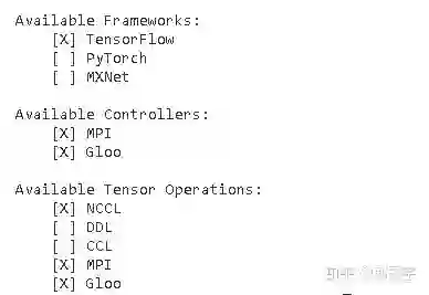 那么怎么判断你的horovod是否正确链接了NCCL呢?答案是使用horovodrun --check-build命令,如果安装好的话,应该会显示以下结果: