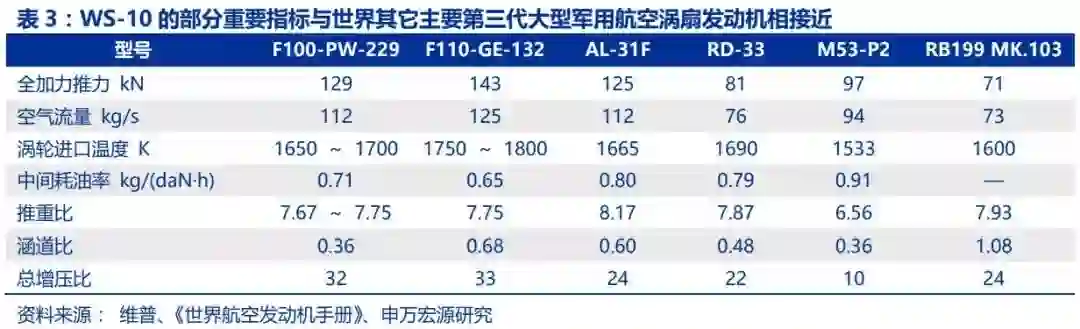 2.2.1、WS-10作为我国第三代战机的主要动力系统,性能表现接近甚至超过同代典型发动机型号