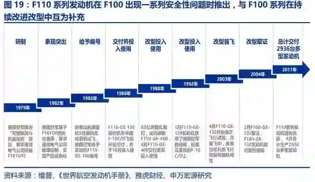 在F100初期使用时故障频发的背景下,可靠性、耐久性等均匹配军方要求的F110发动机由GE公司抓住机遇成功推出。由于F100研制过程中片面强调性能,忽视了适用性、可靠性、耐久性和维修性,而且研制周期短,试验不够充分,F100-PW-100出现了大量飞行安全性、可靠性和耐久性方面问题,曾迫使美国空军一线战斗机停飞。与此同时,通用电气(GE)看到市场的前景,于1976年调整发动机研制方向,兼顾先进性能、可靠性、耐久性和可维护性,最终成功研制出F110型发动机,赢得了美国空军1979年的有限研制合同。据统计,在F110系列累计飞行近200万小时期间,由发动机引起的非计划返修率仅为3.45次/1000飞行小时,因此F110被公认为是安全可靠的代表型号,该款发动机也被视为当今最成功的的第三代军用涡扇发动。