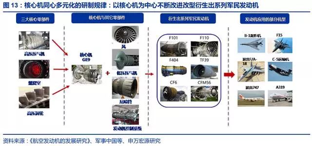 发动机的研制规律是基于核心机进行系列化,同时研制周期长、研发投入高,飞发分离叠加两机专项政策可助力我国航发产业适应上述要求。利用多用途核心机发展系列发动机一直是航空发达国家普遍采用的方式,如美国GE公司就在第三代核心机的基础上成功研制出一系列军民用发动机,包括F101、F110、F404、TF39、CF6和CFM56。我国于70年代初引进美国核心机和验证机研究途径,坚持走基础研究—应用研究—预先发展(核心机、验证机)—工程研制的研究和发展道路,而飞发分离举措的实施则有利于企业专注于核心机研制并依照产业发展逻辑独立开发新发动机型号。另一方面,发动机研制周期长、研发投入高,核心机预研也需要大量资金,与国外相比,投入资金不足严重限制我国航空发动机产业发展。1988年-2003年间,美国的IHPTET计划总计投入50亿美元,约是我国1980年-2000年间两项发动机预研计划总投入的6倍,“两级专项”政策带来的巨额资金支持将大幅缓解航空发动机研制的资金压力并加速核心机研制进度。