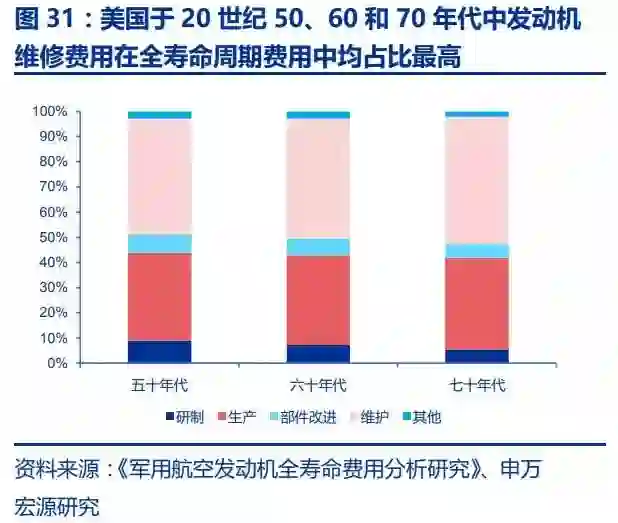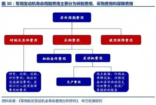 (一)发动机的全寿命周期费用可分为研制、采购和保障费用,其中维修保障费用在全寿命周期内的占比最高,可达到50%左右