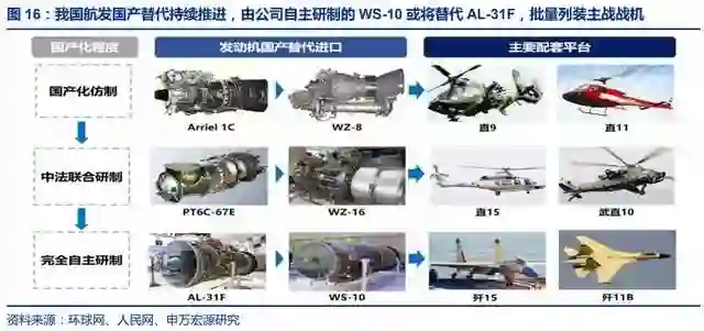 我国第三代发动机经历从测绘仿制到自主研发的进程,公司生产的WS-10有望实现俄制AL31的国产化替代。中国航空发动机的研制是在新中国成立后一片空白的基础上发展起来的,从最初的仿制、改进一步步积累经验,逐渐形成独立设计研制的能力。涡扇-10是国产第三代军用航空涡扇发动机,结束了国产先进涡扇发动机的空白,预期配装多款战斗机(歼-10、歼-11、歼-15、歼-16等三代和四代战机)。由知网文献可知,涡扇-10期初就是应歼-10战机而生,研发阶段曾配装歼-10试飞;维基百科显示,涡扇-10可作为歼-11、歼-15及歼-16的动力装置;据美国《大众科学》称,2017年中国最新制造的歼-20战机已配备涡扇-10。