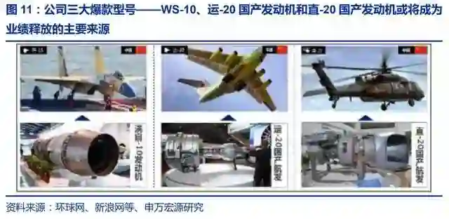 公司高研发能力确保高市占率,配装于我国未来高性能军机的WS-10、运-20国产发动机和直-20国产发动机或将成为公司未来业绩贡献的主要爆款产品。公司旗下四大主机厂生产交付多种类军用航空发动机,并各有主力型号提高市场占有率,同时坚持型号研制不动摇,大力投入研制项目,逐步完善研发体系,借以巩固航空发动机及衍生产品的核心地位。公司是我国三代主战机型发动机的国内唯一供应商,同时目前还承担着大部分国家急需航空发动机型号的承制工作,如配装于歼-11B、歼-15、歼16的涡扇-10,配装于歼-20的国产涡扇发动机,配装于运-20的国产大涵道比动力装置,装配于直-20的国产涡轴航空发动机等。其中我们认为,在目前处于研制或生产阶段的型号中,涡扇-10、运-20国产发动机和直-20国产发动机是公司的三大爆款发动机型号,在航发行业景气度即将面临加速增长的时点上,这三款重要航空发动机型号或将有效驱动公司业绩的逐步释放。