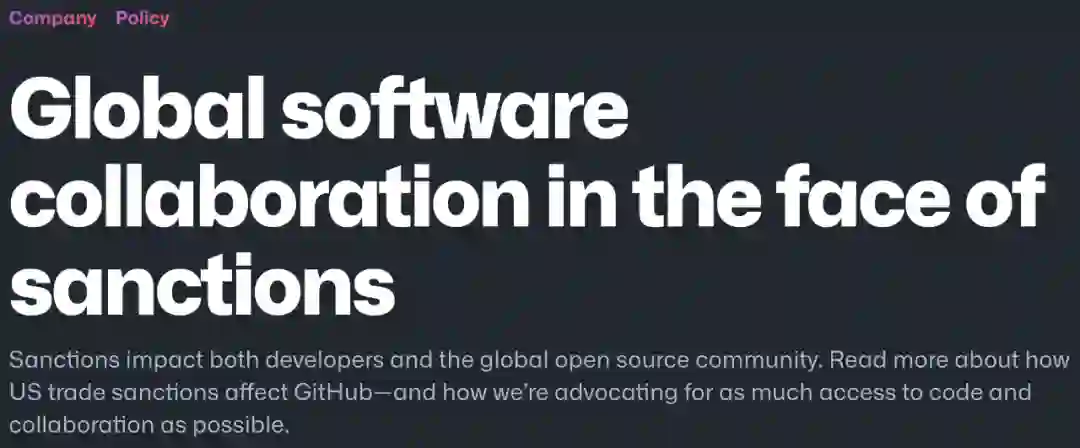 GitHub关于应对制裁的规定:https://github.blog/2019-09-12-global-software-collaboration-in-the-face-of-sanctions/