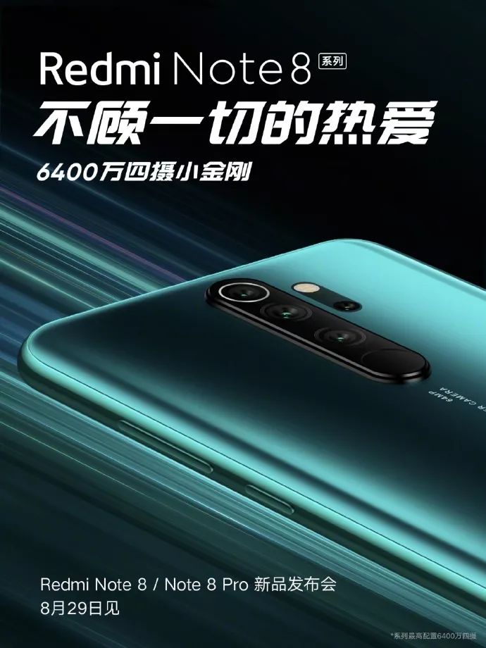 官宣之后,红米还官方总结了一波Redmi Note 8系列的亮点“新品代号「四摄小金刚」,Redmi Note 8和Redmi Note 8 Pro。6400万相机技术新突破,8月29日真首发!”