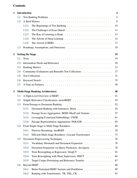 本书提供了一种称为transformers的神经网络体系结构的文本排序概述,其中BERT(来自transformers的双向编码器表示)[Devlin et al., 2019],谷歌的发明,是最著名的例子。毫不夸张地说,BERT彻底改变了自然语言处理(NLP)和信息检索(IR),以及更广泛地说,人类语言技术(HLT),一个包罗万象的术语,包括处理、分析和以其他方式操纵(人类)语言数据的技术。在文本排序方面,BERT提供的结果无疑比之前的结果质量更好。这是一个强大的和广泛复制的实证结果,在许多文本排序任务,领域和问题公式。