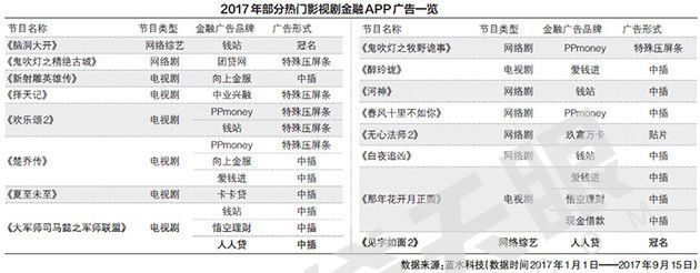 从去年开始,不少网络热播剧每播到精彩处就会有一段“创意中插”:演员配合剧情发展和广告巧妙融合的情景短剧。而广告主几乎是清一色的借贷平台,广告费90万元起步,一般是100多万一条,高的话300多万。热门网剧的主要受众是年轻群体,18-22岁的学生占据很大比例。财大气粗的网络借贷平台不惜烧钱搞营销,抗诱惑能力不高的学生群体自然容易在形形色色的平台借贷。