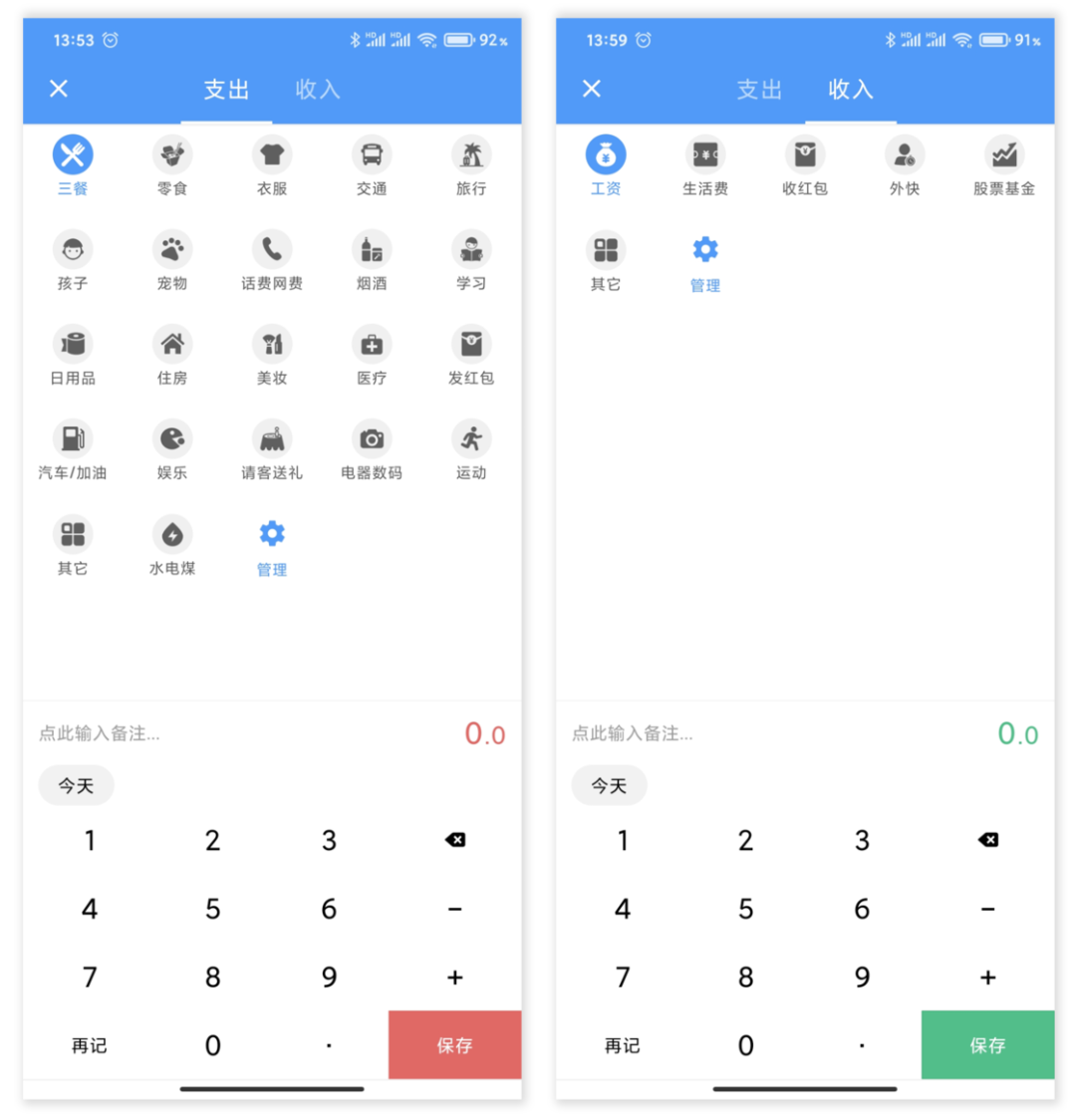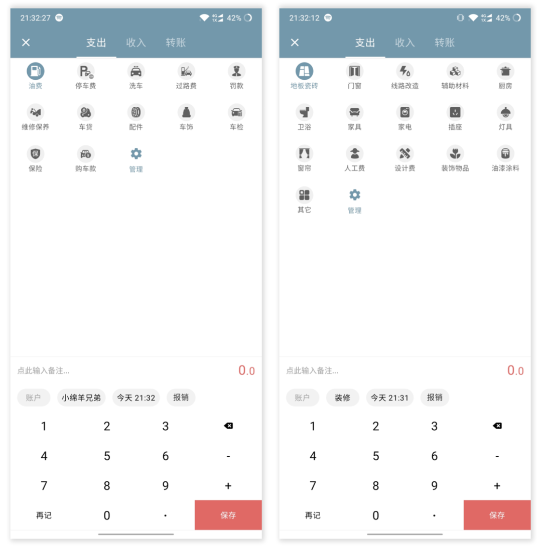 钱迹中默认类目应该算是「快速记账」这个概念下的极限了
